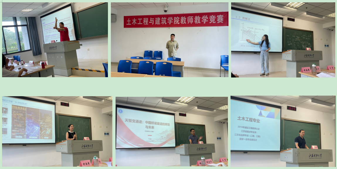 竞赛设置“课堂教学赛道”与“教学创新赛道”两个类别。在课堂教学赛道中,11名青年教师围绕所授课程的教学节段,系统阐述教学目标、教学内容及重点难点,进行了每人25分钟的说课与授课展示。课程涵盖混凝土结构、运筹学、建筑设计、土木工程概论等专业课程。参赛教师结合课程特点精心设计教学方案,展现出扎实的教学功底与富有感染力的课堂表现,充分体现了良好的教学素养。在教学创新赛道中,教师们聚焦教学实践中的创新举措,从教学设计思路、信息技术融合、课程思政融入等方面进行了深入汇报。