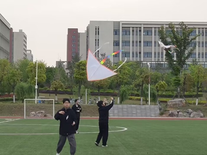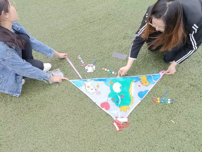 本次放风筝活动同学们一是可以自行制作或者购买风筝放飞,二是可以利用筑梦服务社提供的风筝进行涂鸦和彩绘后再放飞。五颜六色的颜料点燃了同学们的绘画的热情,让大家深深沉浸在创作的海洋中。风筝在同学们的欢笑声中飞上了天空,风筝越放越多,越放越高……伴着正盛的春光,一丝线、一风筝、几笔色彩就勾勒出青春的身影,把梦想随着手中的风筝一同放飞,俯瞰着春意大地,伴着阵阵清风飞向诗与远方。