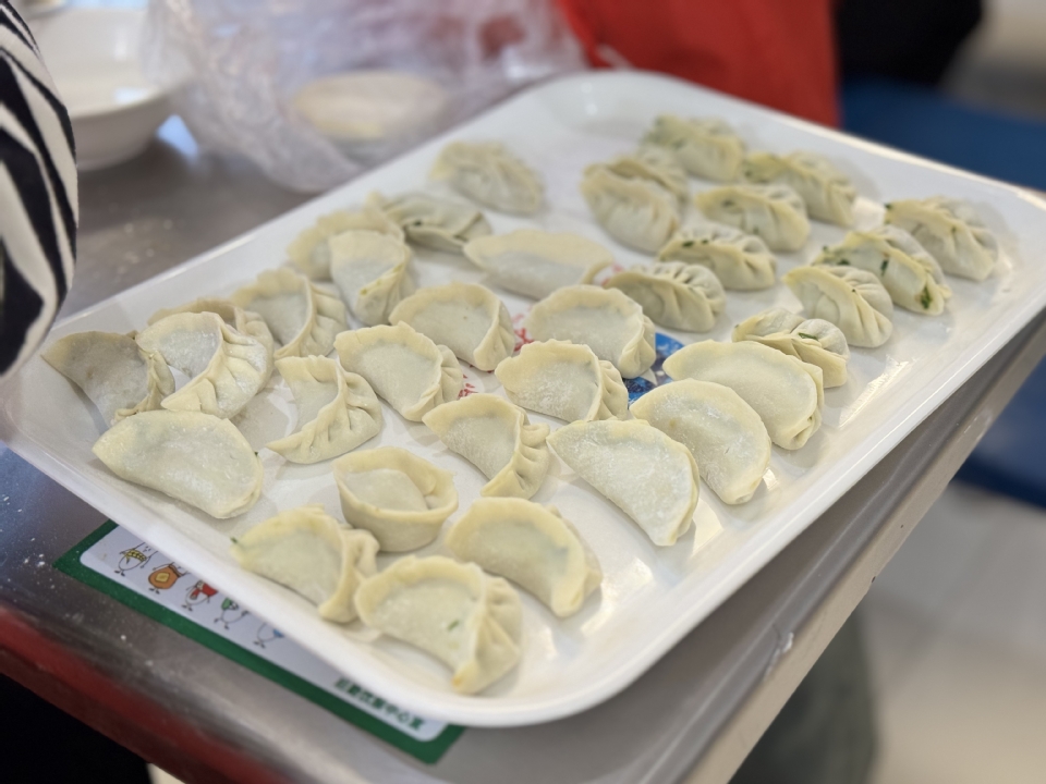 活动的高潮是包饺子,大家围坐在一起,面前是堆积如山的饺子皮和新鲜的韭菜馅。初学者与经验丰富的同学相互交流,学习包饺子的技巧。手忙脚乱的瞬间,充满了青春的气息与生机。有人把饺子包成了各种形状,欢笑声在教室里此起彼伏。