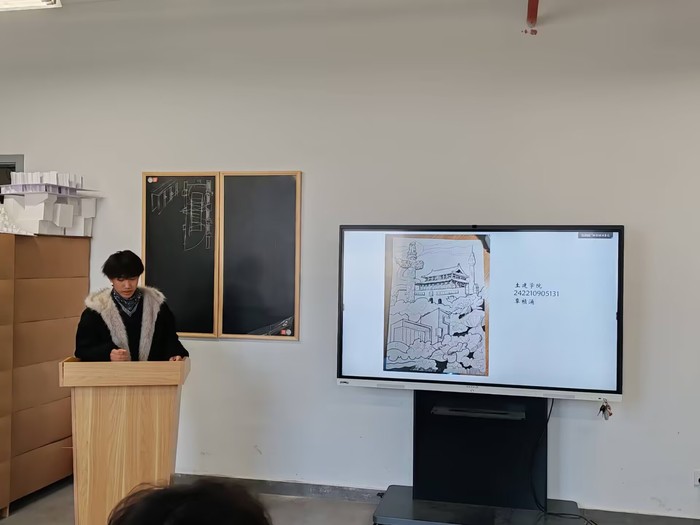 本次绘画比赛内容是围绕主题,以展现出我国成立七十五周年以来的辉煌与成就。活动中,6名参赛选手们对自己的绘画作品作2分钟的简单介绍,由公司建筑学系王山水老师进行点评。在介绍环节中,选手们准备充分,将自己前期认真绘画的作品展示给大家看,以饱满的热情对待本次的活动。