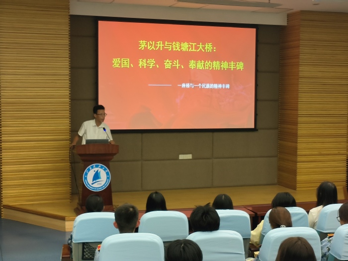 2025年9月22日,在图书馆报告厅101成功举办以“茅以升与钱塘江大桥:爱国、科学、奋斗、奉献的精神丰碑——一座桥与一个民族的精神丰碑”为主题的专题讲座。本次讲座由公司党委书记李红明主持,特邀茅以升纪念馆副馆长张浩担任主讲人,公司2025级全体新生到场聆听,共同感悟桥梁大师茅以升的爱国情怀与科学精神,以及钱塘江大桥所承载的民族记忆。